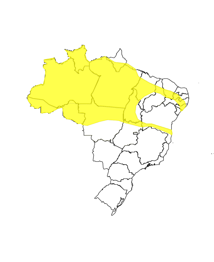No alerta amarelo, há ocorrência de chuva entre 20 e 30 mm/h ou até 50 mm/dia, com ventos intensos (40-60 km/h). No laranja, chuva entre 30 e 60 mm/h ou 50 e 100 mm/dia, ventos intensos (60-100 km/h).