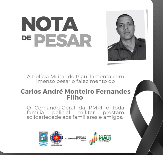 A Polícia Militar do Piauí emitiu nota de pesar lamentando a morte do soldado Carlos André.